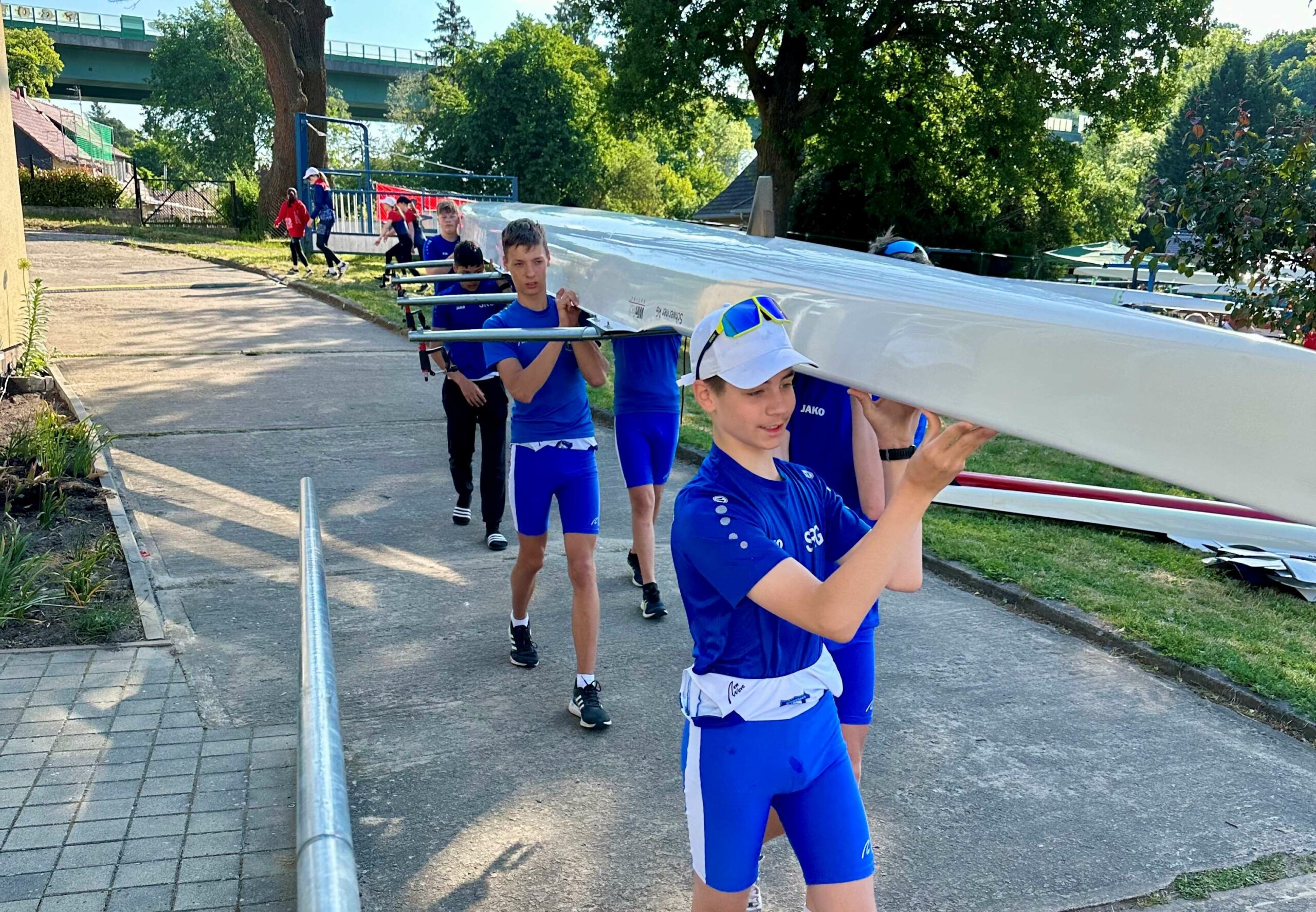 In Rüdersdorf erreichte die U15 der SRG drei Siege. Kamil Bekirov und Matti Hodea konnten mit einem klaren Sieg im Doppelzweier (AK 12/13 Jungen) überzeugen. Sie untermauern damit ihre Ambitionen auf den Bundeswettbewerb in Berlin. Beide erreichten zusammen mit Fynn Raben, Lion Große und Steuermann Patrick Gerstner ebenso einen klaren Sieg im Doppelvierer (AK 12/13 Jungen).