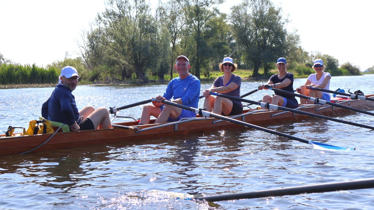 Nach wenigen hundert Metern haben wir die Spülinsel verlassen, auf der das Bootshaus der Ruderriege Havelberg liegt, und biegen auf die Havel ein. Die Nacht haben wir in Gästezimmern des Vereins verbracht und sind nach einem ausführlichen Frühstück, das uns die Ruderriege liebevoll ausgerichtet hat, gut gestärkt in die Boote gestiegen. Blauer Himmel, glattes Wasser und Temperaturen um 25 Grad steigern die Freude auf einen schönen Rudertag in Sachsen-Anhalt und Brandenburg.